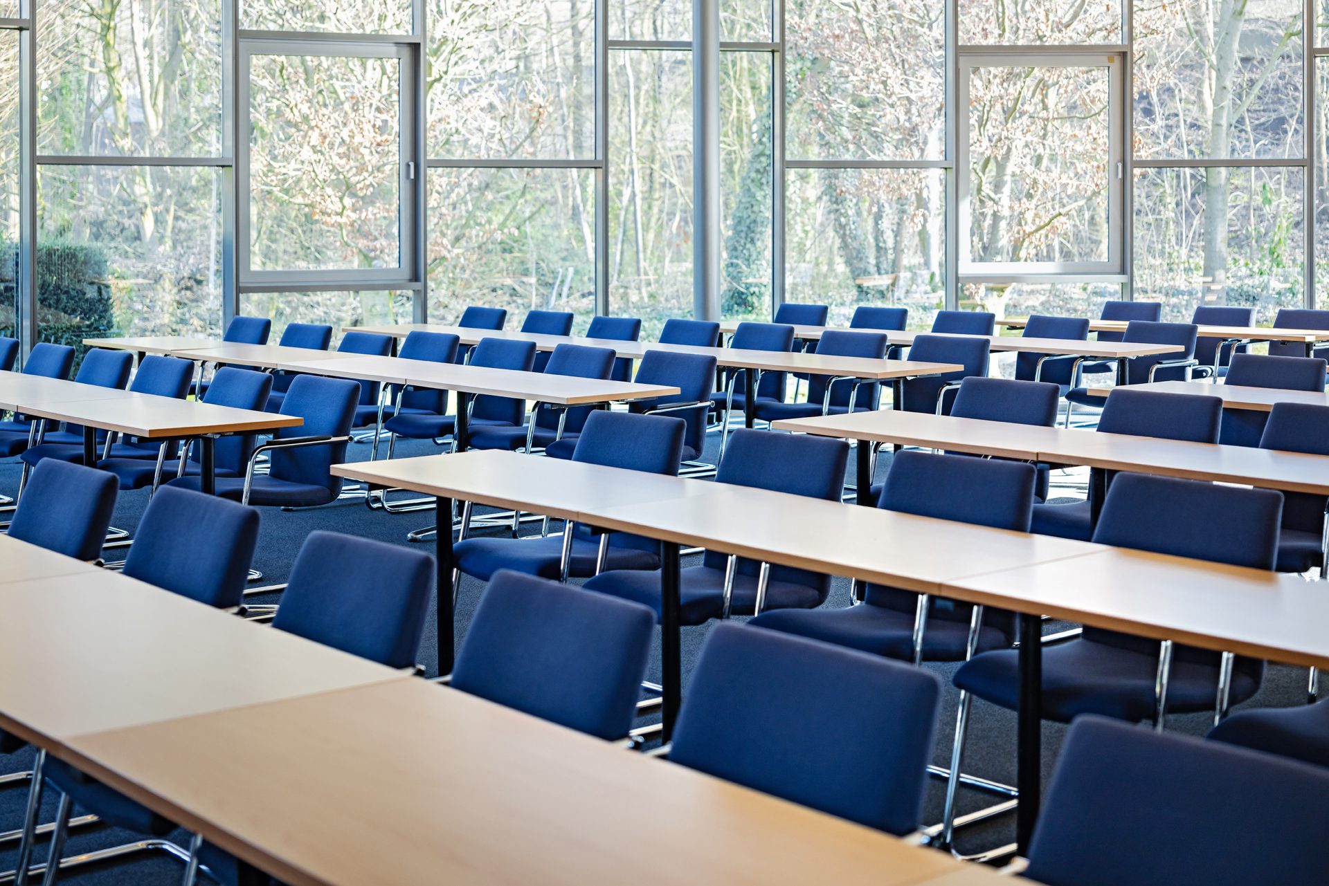 Im HAUS DER UNTERNEHMER bieten 18 Räume alle Möglichkeiten, um von 2 Personen bis hin zu 350 Personen Veranstaltungen aller Art durchzuführen. Die maximale Kapazität des größten Raums, dem Auditorium, beträgt 199. Es können aber Live-Übertragungen in andere Räume erfolgen. Informieren Sie sich hier über alle unsere Räume.