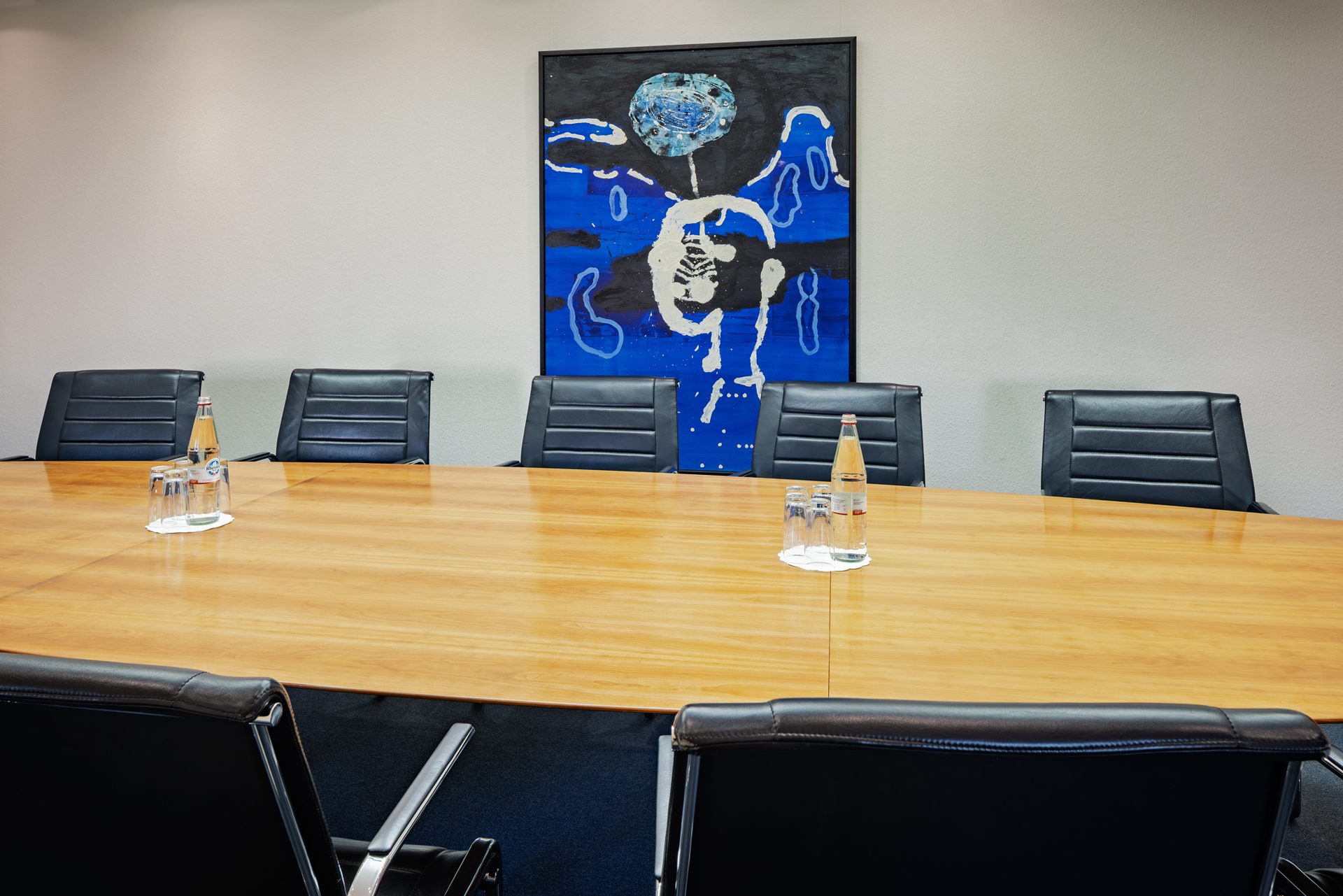 An einem großen Konferenzraum finden bis zu 12 Teilnehmer Platz.