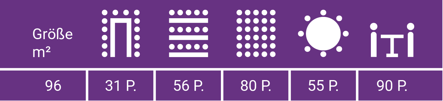 Je nach Bestuhlungsform ergeben sich vielfältige Nutzungsmöglichkeiten: