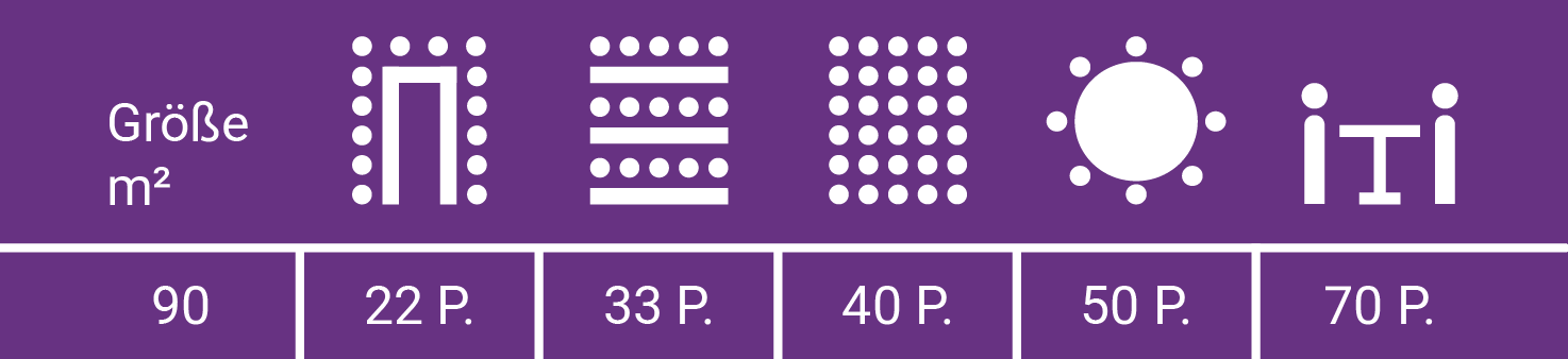 Je nach Bestuhlungsform bietet der Raum folgende Kapazitäten: